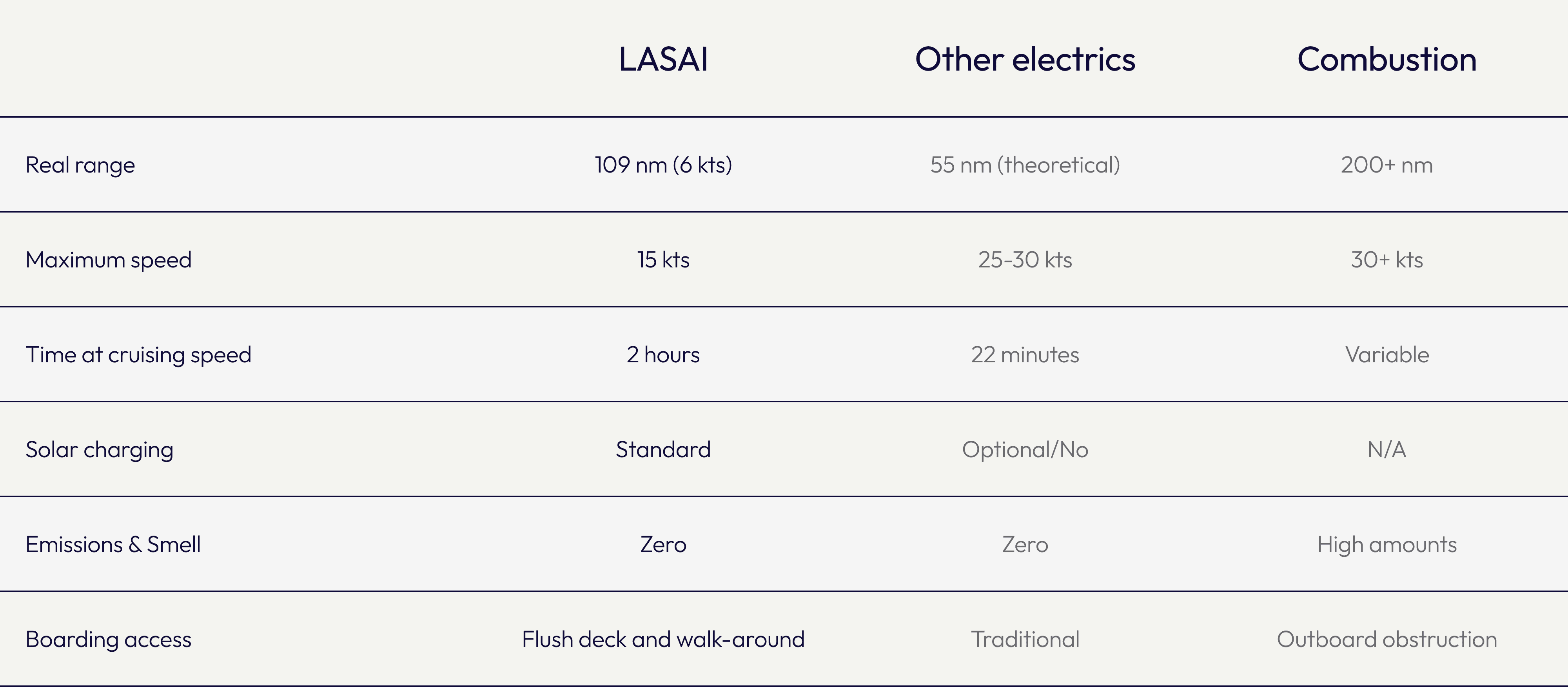 Höchstgeschwindigkeit 15 Knoten und >100 SM Reichweite (bei 6 Knoten).