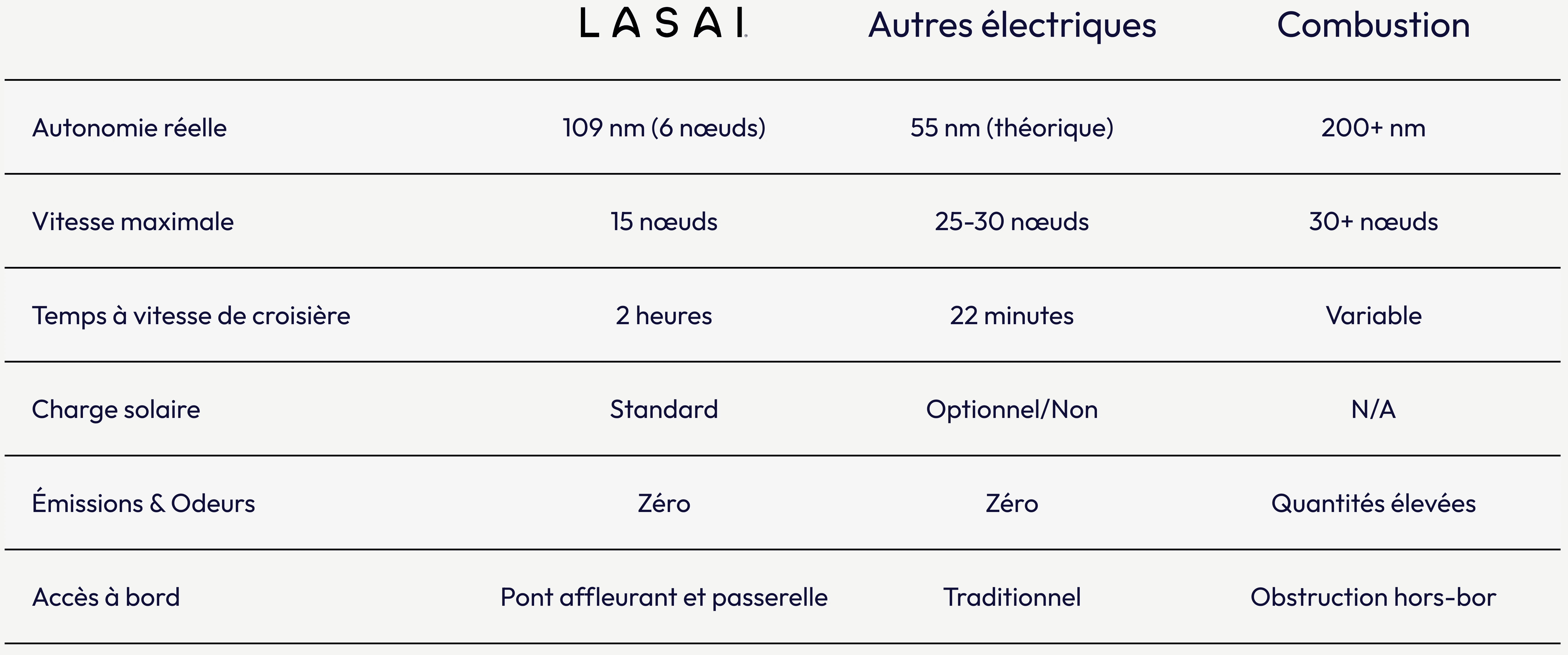 "Notre nouveau Lasai est un vrai plaisir — moteurs électriques jumeaux, navigation silencieuse... que pourrait-on demander de plus ? Pas grand-chose, honnêtement."